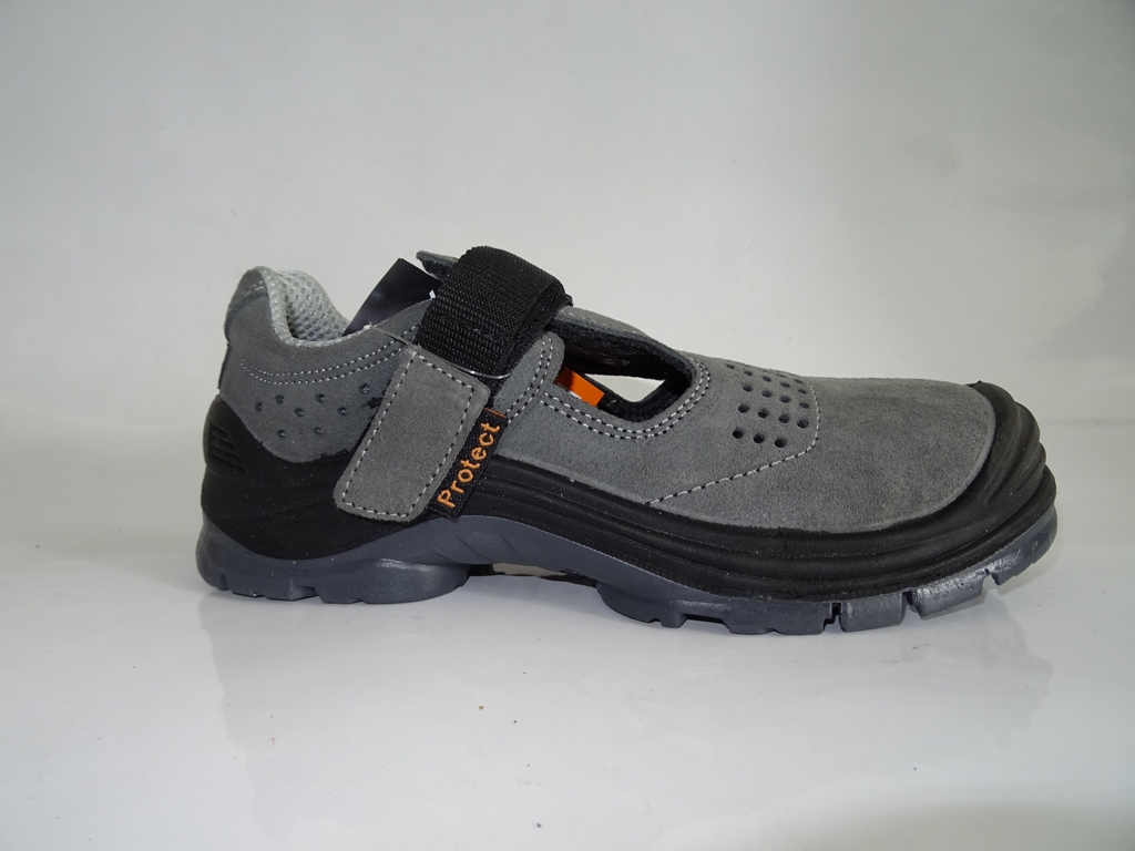 Sandały wykonane z wysokiej jakości skóry welurowej. Posiadające antystatyczną, antypoślizgową i odporną na oleje, benzynę oraz roztwory kwasów i zasad podeszwę. Wyposażone w podszewkę zapewniającą doskonałą absorpcję wilgoci, odporną na przetarcia.
