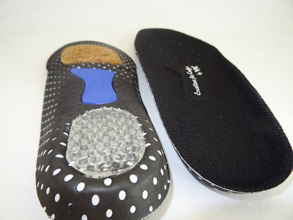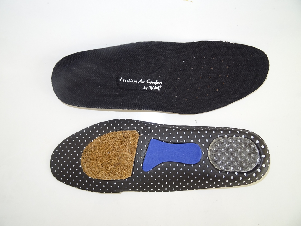 Wkładki wykonane z wysokiej jakości materiału wzmocnionego włóknem bambusowym, dzięki czemu są trwałe. Żelowa wstawka pod piętą zapewnia amortyzację, natomiast wierzch wykonany jest z materiału pochłaniającego wilgoć, odpornego na ścieranie.
